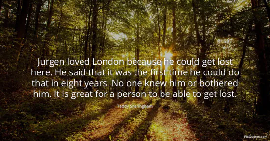 "Jurgen loved London because he could get lost here. He said that it was the first time he could do that in eight years. No one knew him or bothered him. It is great for a person to be able to get lost." FixQuotes, 16 Jan. 2026, https://fixquotes.com/quotes/jurgen-loved-london-because-he-could-get-lost-103926/. Accessed 12 Feb. 2026.