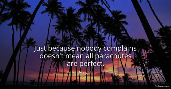 Hill, Benny. (2026, January 14). Just because nobody complains doesn't mean all parachutes are perfect. FixQuotes. https://fixquotes.com/quotes/just-because-nobody-complains-doesnt-mean-all-30084/