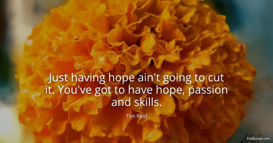 Reid, Tim. "Just having hope ain't going to cut it. You've got to have hope, passion and skills." FixQuotes. January 15, 2026. https://fixquotes.com/quotes/just-having-hope-aint-going-to-cut-it-youve-got-165917/.