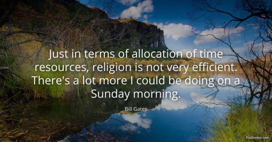 Gates, Bill. (2026, January 17). Just in terms of allocation of time resources, religion is not very efficient. There's a lot more I could be doing on a Sunday morning. FixQuotes. https://fixquotes.com/quotes/just-in-terms-of-allocation-of-time-resources-29379/