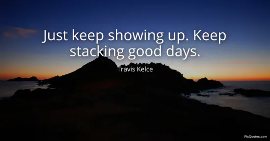 Kelce, Travis. (2026, January 25). Just keep showing up. Keep stacking good days. FixQuotes. https://fixquotes.com/quotes/just-keep-showing-up-keep-stacking-good-days-184174/