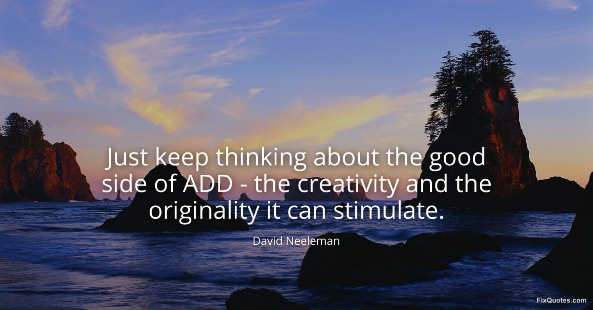 Neeleman, David. (2026, January 17). Just keep thinking about the good side of ADD - the creativity and the originality it can stimulate. FixQuotes. https://fixquotes.com/quotes/just-keep-thinking-about-the-good-side-of-add-39126/