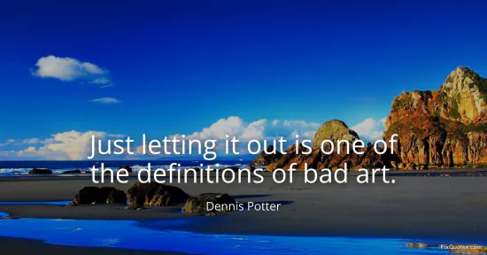 Potter, Dennis. "Just letting it out is one of the definitions of bad art." FixQuotes. January 17, 2026. https://fixquotes.com/quotes/just-letting-it-out-is-one-of-the-definitions-of-56657/.