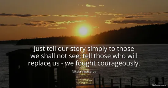 Vaptsarov, Nikola. "Just tell our story simply to those we shall not see, tell those who will replace us - we fought courageously." FixQuotes. March 12, 2026. https://fixquotes.com/quotes/just-tell-our-story-simply-to-those-we-shall-not-186051/.