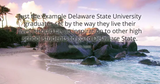 "Just the example Delaware State University graduates set by the way they live their lives, should be an inspiration to other high school students to go to Delaware State." FixQuotes, 15 Jan. 2026, https://fixquotes.com/quotes/just-the-example-delaware-state-university-153861/. Accessed 12 Feb. 2026.