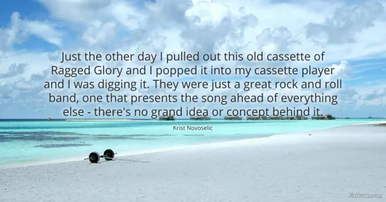Novoselic, Krist. (2026, January 15). Just the other day I pulled out this old cassette of Ragged Glory and I popped it into my cassette player and I was digging it. They were just a great rock and roll band, one that presents the song ahead of everything else - there's no grand idea or concept behind it. FixQuotes. https://fixquotes.com/quotes/just-the-other-day-i-pulled-out-this-old-cassette-152580/