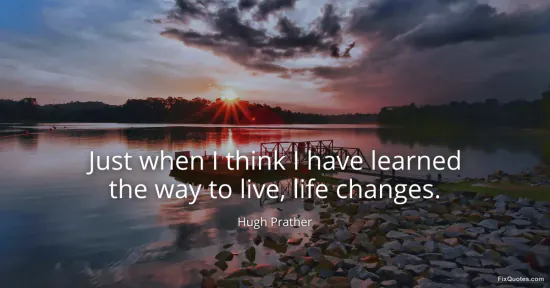 Prather, Hugh. (2026, January 16). Just when I think I have learned the way to live, life changes. FixQuotes. https://fixquotes.com/quotes/just-when-i-think-i-have-learned-the-way-to-live-125561/