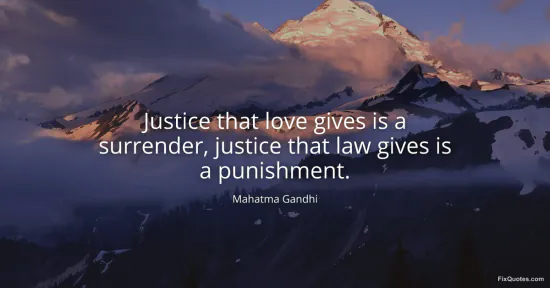 Gandhi, Mahatma. (2026, February 7). Justice that love gives is a surrender, justice that law gives is a punishment. FixQuotes. https://fixquotes.com/quotes/justice-that-love-gives-is-a-surrender-justice-41631/