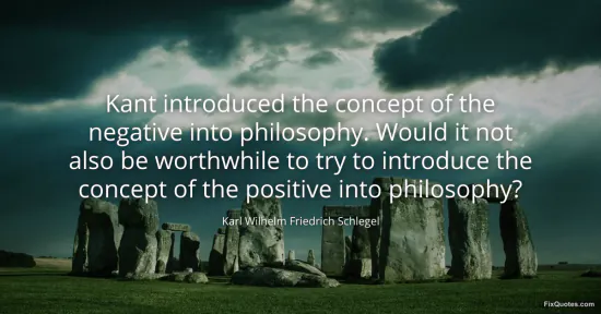Schlegel, Karl Wilhelm Friedrich. "Kant introduced the concept of the negative into philosophy. Would it not also be worthwhile to try to introduce the concept of the positive into philosophy?" FixQuotes. January 16, 2026. https://fixquotes.com/quotes/kant-introduced-the-concept-of-the-negative-into-137556/.
