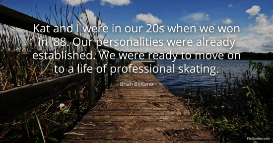Boitano, Brian. "Kat and I were in our 20s when we won in '88. Our personalities were already established. We were ready to move on to a life of professional skating." FixQuotes. January 16, 2026. https://fixquotes.com/quotes/kat-and-i-were-in-our-20s-when-we-won-in-88-our-132005/.