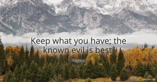 Plautus. (2026, January 17). Keep what you have; the known evil is best. FixQuotes. https://fixquotes.com/quotes/keep-what-you-have-the-known-evil-is-best-24457/