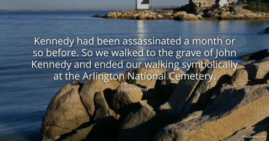 Kumar, Satish. (2026, January 16). Kennedy had been assassinated a month or so before. So we walked to the grave of John Kennedy and ended our walking symbolically at the Arlington National Cemetery. FixQuotes. https://fixquotes.com/quotes/kennedy-had-been-assassinated-a-month-or-so-136537/
