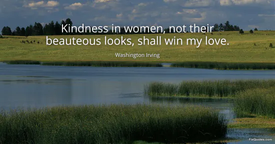 Irving, Washington. (2026, January 18). Kindness in women, not their beauteous looks, shall win my love. FixQuotes. https://fixquotes.com/quotes/kindness-in-women-not-their-beauteous-looks-shall-2292/