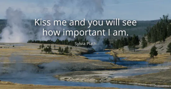 Plath, Sylvia. (2026, January 15). Kiss me and you will see how important I am. FixQuotes. https://fixquotes.com/quotes/kiss-me-and-you-will-see-how-important-i-am-71553/
