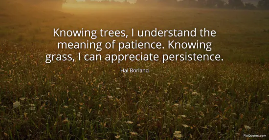 Borland, Hal. "Knowing trees, I understand the meaning of patience. Knowing grass, I can appreciate persistence." FixQuotes. February 9, 2026. https://fixquotes.com/quotes/knowing-trees-i-understand-the-meaning-of-171277/.
