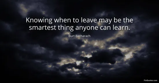 Bacharach, Burt. (2026, January 14). Knowing when to leave may be the smartest thing anyone can learn. FixQuotes. https://fixquotes.com/quotes/knowing-when-to-leave-may-be-the-smartest-thing-51764/