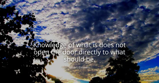 Einstein, Albert. (2026, January 17). Knowledge of what is does not open the door directly to what should be. FixQuotes. https://fixquotes.com/quotes/knowledge-of-what-is-does-not-open-the-door-25301/