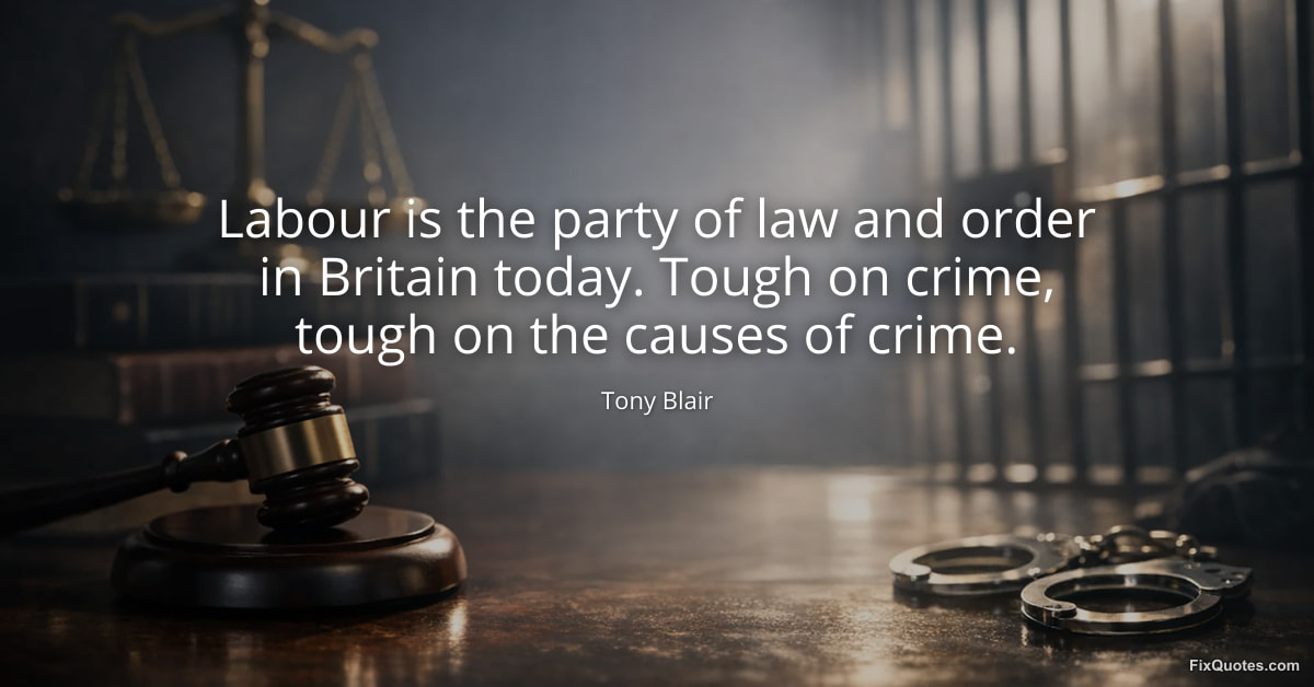 Blair, Tony. (2026, February 16). Labour is the party of law and order in Britain today. Tough on crime, tough on the causes of crime. FixQuotes. https://fixquotes.com/quotes/labour-is-the-party-of-law-and-order-in-britain-27846/