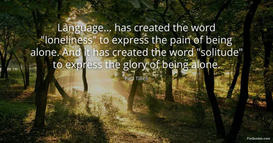 Tillich, Paul. "Language... has created the word "loneliness" to express the pain of being alone. And it has created the word "solitude" to express the glory of being alone." FixQuotes. January 18, 2026. https://fixquotes.com/quotes/language-has-created-the-word-loneliness-to-22971/.