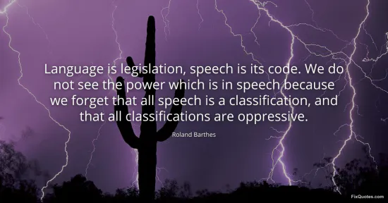 The subtext is structuralist and, more sharply, anti-innocence. We “forget” speech’s power because it feels natural, like air. But for Barthes, every noun is a filing cabinet: to name is to sort, to sort is to decide what counts, what doesn’t, and where each thing belongs. “Classification” sounds like library science until you hear the coercion in it: classifications set norms, make deviations legible as deviance, and turn messy human experience into administrable boxes. That’s why he calls them “oppressive” - not necessarily because speakers intend harm, but because order itself enforces exclusions.