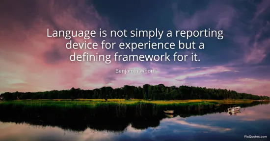 Whorf, Benjamin. "Language is not simply a reporting device for experience but a defining framework for it." FixQuotes. February 9, 2026. https://fixquotes.com/quotes/language-is-not-simply-a-reporting-device-for-149878/.