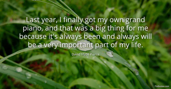 Pierce, David Hyde. "Last year, I finally got my own grand piano, and that was a big thing for me because it's always been and always will be a very important part of my life." FixQuotes. January 17, 2026. https://fixquotes.com/quotes/last-year-i-finally-got-my-own-grand-piano-and-65706/.