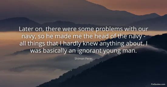 Context does the rest. Peres came of age alongside Israel’s founding, when defense infrastructure was a crash course and “navy” could mean survival, deterrence, arms procurement, and diplomatic friction rolled into one. Calling himself “basically an ignorant young man” reads as humility, but it’s also a way to underline legitimacy: I was there at the messy beginning, promoted into responsibility before the rulebook existed. That’s not just memory; it’s a claim to historical weight.