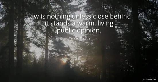 Phillips, Wendell. "Law is nothing unless close behind it stands a warm, living public opinion." FixQuotes. January 17, 2026. https://fixquotes.com/quotes/law-is-nothing-unless-close-behind-it-stands-a-63910/.