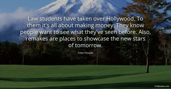 Hooper, Tobe. (2026, January 16). Law students have taken over Hollywood. To them it's all about making money. They know people want to see what they've seen before. Also, remakes are places to showcase the new stars of tomorrow. FixQuotes. https://fixquotes.com/quotes/law-students-have-taken-over-hollywood-to-them-113511/