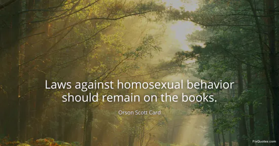 Card, Orson Scott. (2026, January 16). Laws against homosexual behavior should remain on the books. FixQuotes. https://fixquotes.com/quotes/laws-against-homosexual-behavior-should-remain-on-96235/