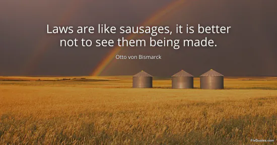 Bismarck, Otto von. (2026, January 15). Laws are like sausages, it is better not to see them being made. FixQuotes. https://fixquotes.com/quotes/laws-are-like-sausages-it-is-better-not-to-see-164354/