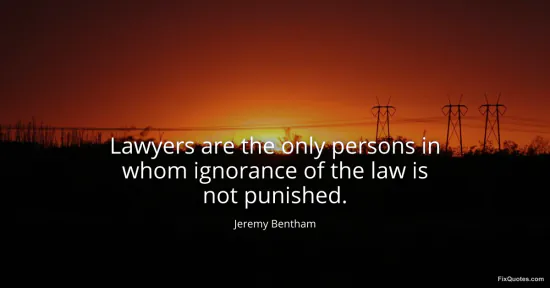 Bentham, Jeremy. "Lawyers are the only persons in whom ignorance of the law is not punished." FixQuotes. January 15, 2026. https://fixquotes.com/quotes/lawyers-are-the-only-persons-in-whom-ignorance-of-15116/.