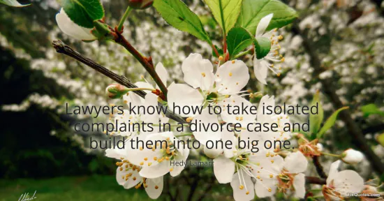 Lamarr, Hedy. (2026, January 17). Lawyers know how to take isolated complaints in a divorce case and build them into one big one. FixQuotes. https://fixquotes.com/quotes/lawyers-know-how-to-take-isolated-complaints-in-a-48858/