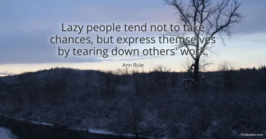 Rule, Ann. "Lazy people tend not to take chances, but express themselves by tearing down others' work." FixQuotes. February 16, 2026. https://fixquotes.com/quotes/lazy-people-tend-not-to-take-chances-but-express-157726/.