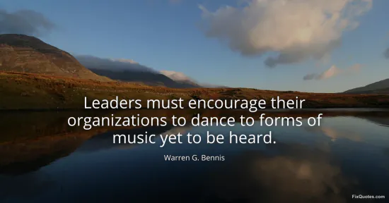 Bennis, Warren G. "Leaders must encourage their organizations to dance to forms of music yet to be heard." FixQuotes. January 18, 2026. https://fixquotes.com/quotes/leaders-must-encourage-their-organizations-to-2263/.