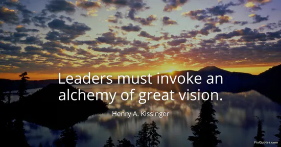 Kissinger, Henry A. "Leaders must invoke an alchemy of great vision." FixQuotes. January 18, 2026. https://fixquotes.com/quotes/leaders-must-invoke-an-alchemy-of-great-vision-19842/.