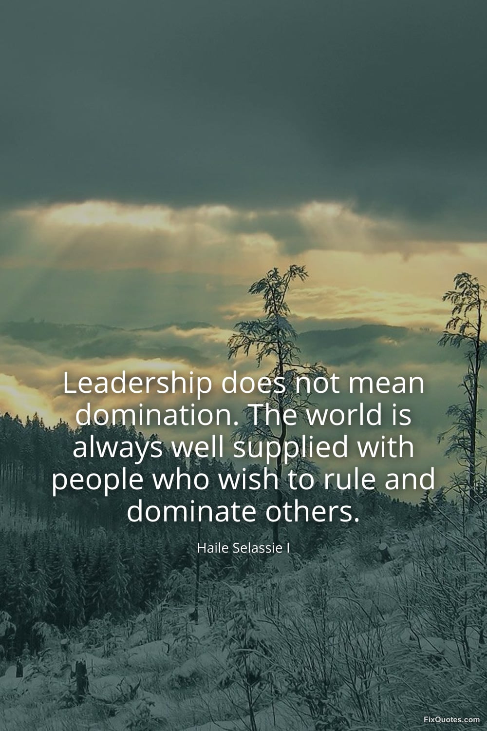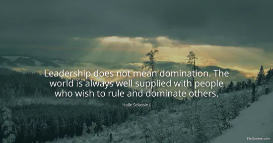 Selassie, Haile. "Leadership does not mean domination. The world is always well supplied with people who wish to rule and dominate others." FixQuotes. March 14, 2026. https://fixquotes.com/quotes/leadership-does-not-mean-domination-the-world-is-186075/.