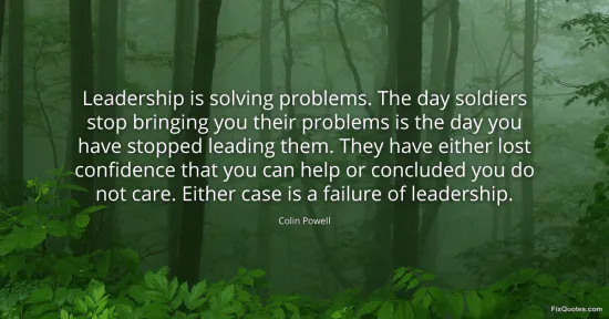 "Leadership is solving problems. The day soldiers stop bringing you their problems is the day you have stopped leading them. They have either lost confidence that you can help or concluded you do not care. Either case is a failure of leadership"