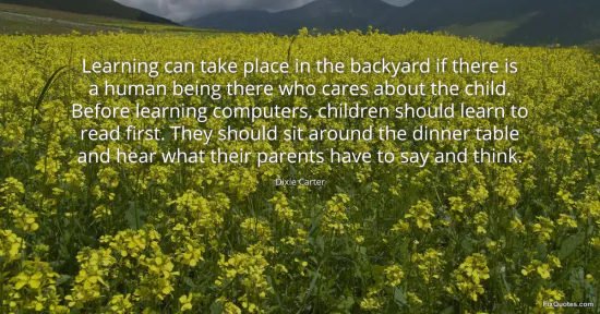 Carter, Dixie. (2026, January 17). Learning can take place in the backyard if there is a human being there who cares about the child. Before learning computers, children should learn to read first. They should sit around the dinner table and hear what their parents have to say and think. FixQuotes. https://fixquotes.com/quotes/learning-can-take-place-in-the-backyard-if-there-65357/