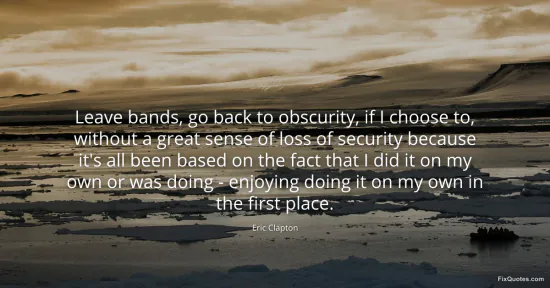 Clapton, Eric. "Leave bands, go back to obscurity, if I choose to, without a great sense of loss of security because it's all been based on the fact that I did it on my own or was doing - enjoying doing it on my own in the first place." FixQuotes. February 20, 2026. https://fixquotes.com/quotes/leave-bands-go-back-to-obscurity-if-i-choose-to-7069/.