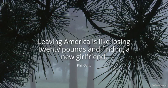 Ochs, Phil. (2026, January 16). Leaving America is like losing twenty pounds and finding a new girlfriend. FixQuotes. https://fixquotes.com/quotes/leaving-america-is-like-losing-twenty-pounds-and-107278/
