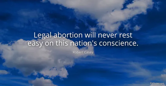 "Legal abortion will never rest easy on this nation's conscience" is a politician's sentence engineered to outlive the policy fight. Robert Casey frames abortion less as a question of rights or health than as a moral debt the country keeps trying to refinance. The phrasing does two strategic things at once: it concedes the reality of legality while refusing the legitimacy of acceptance. "Legal" is treated as a technical status, not an ethical resolution, and "never" locks the argument into permanence. No amount of procedure, precedent, or electoral churn can make this issue go away, he implies, because the real tribunal isn't the Supreme Court; it's the national soul.