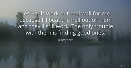 Shaw, Tommy. (2026, January 16). Les Pauls work out real well for me because I'll beat the hell out of them and they'll still work. The only trouble with them is finding good ones. FixQuotes. https://fixquotes.com/quotes/les-pauls-work-out-real-well-for-me-because-ill-91349/