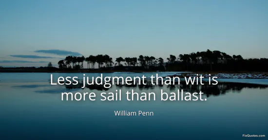 Penn, William. (2026, January 14). Less judgment than wit is more sail than ballast. FixQuotes. https://fixquotes.com/quotes/less-judgment-than-wit-is-more-sail-than-ballast-166012/