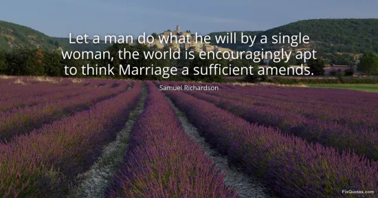 Richardson, Samuel. "Let a man do what he will by a single woman, the world is encouragingly apt to think Marriage a sufficient amends." FixQuotes. January 18, 2026. https://fixquotes.com/quotes/let-a-man-do-what-he-will-by-a-single-woman-the-11452/.