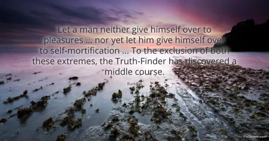 Buddha. "Let a man neither give himself over to pleasures ... nor yet let him give himself over to self-mortification ... To the exclusion of both these extremes, the Truth-Finder has discovered a middle course." FixQuotes. March 10, 2026. https://fixquotes.com/quotes/let-a-man-neither-give-himself-over-to-pleasures-185948/.