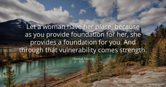 Moore, Shemar. (2026, January 16). Let a woman have her place, because as you provide foundation for her, she provides a foundation for you. And through that vulnerability comes strength. FixQuotes. https://fixquotes.com/quotes/let-a-woman-have-her-place-because-as-you-provide-94859/