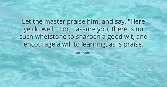 | Source | Roger Ascham, The Scholemaster (1570). Contains passage advising praise: "Let the master praise him, and say, 'Here ye do well.' For, I assure you, there is no such whetstone to sharpen a good wit, and encourage a will to learning, as is praise.'" |