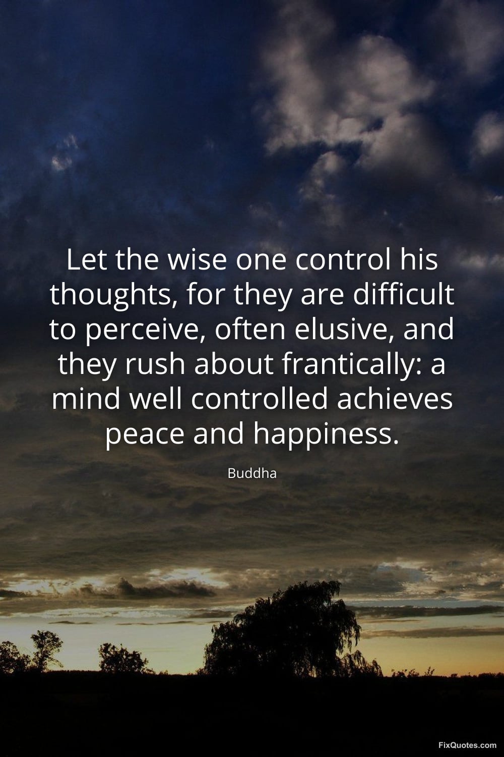 "Let the wise one control his thoughts, for they are difficult to perceive, often elusive, and they rush about frantically: a mind well controlled achieves peace and happiness." FixQuotes, 10 Mar. 2026, https://fixquotes.com/quotes/let-the-wise-one-control-his-thoughts-for-they-185981/. Accessed 13 Mar. 2026.