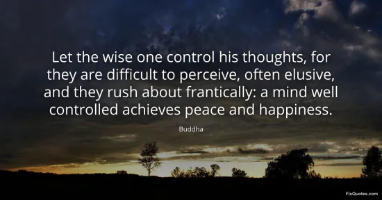 Buddha. "Let the wise one control his thoughts, for they are difficult to perceive, often elusive, and they rush about frantically: a mind well controlled achieves peace and happiness." FixQuotes. March 10, 2026. https://fixquotes.com/quotes/let-the-wise-one-control-his-thoughts-for-they-185981/.